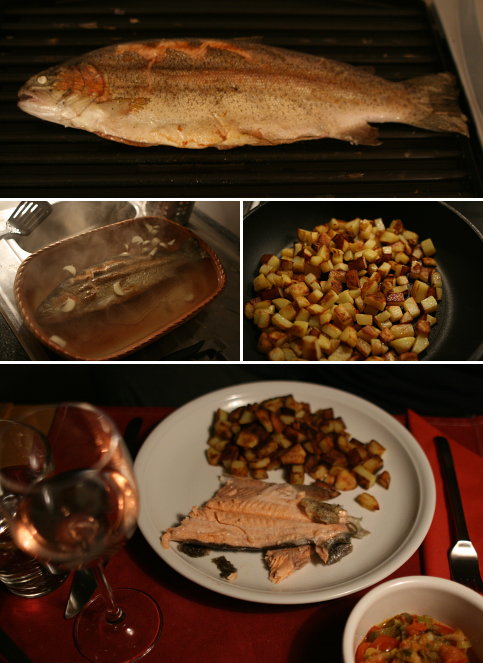 in heißem Salzwasser mit Knoblauch ziehen lassen,