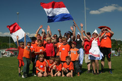 Da wurde Stunde um Stunde fein gespielt wie auch gebolzt, gelaufen, nachgerechnet und jedes Tor bejubelt (wie meiner das 1:0 gegen Tschechien geschossen hat... Vaterstolz). Dazu rundherum gute Laune, Steaksemmeln und Eis am Stiel. Am Ende reichte es nur zum Viertelfinale, in denen sie gegen die überaus disziplinierten Kroaten keine Chance hatten. Aber bei der abendlichen Preisverleihung (Sieger: Frankreich) wurde auch die Mannschaft mit den bestkostümiertesten Fans prämiert, und da wurde es noch einmal richtig spannend: Die Niederlande hatten tatsächlich gewonnen! Was jetzt weniger meinem T-Shirt zuzuschreiben sein dürfte als eher den Müttern, die als Antjes mit Tracht und weißem Häubchen auf dem Kopf (jedoch ohne Holzschuhe) so holländisch aussahen, dass man geneigt war, sie nach Käsehäppchen zu fragen. Aber der Gewinn war nicht die übliche von lokalen Geldinstituten gesponserte Sporttasche, nein: Mein Großer darf zusammen mit seinen Mannschaftskameraden irgendwann im Herbst zusammen mit den Münchner Löwen in die Allianz-Arena einlaufen. Er war so aufgeregt und begeistert, ich glaube, sein ansonsten ehernes Fantum für den FC Bayern war ihm da ausnahmsweise rechtschaffen wurscht.