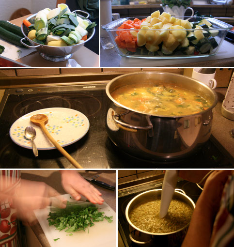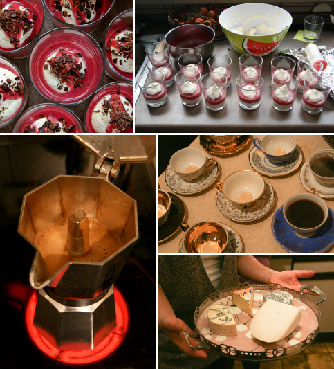 Mein Vater wurde in der vergangenen Woche 75. Und da erinnerten wir drei Geschwister uns, dass wir ihm schon einmal zum 50. Geburtstag ein Menü für seine Geburtstagsgesellschaft gekocht hatten. Das heißt, am Kochen selbst war ich damals noch nicht wirklich beteiligt, ich hatte mich eher so um die Tischdekoration gekümmert. Jedenfalls fanden wir das eine gute Idee, und so kamen wir letzten Freitag und Samstag zusammen, um in der nicht übermäßig großen Küche meiner Eltern ein viergängiges Menü für 16 Personen zuzubereiten (uns selbst inklusive). Die Möwe und ich waren für Antipasti und Nachspeise zuständig, mein Bruder kochte die Vorspeise und Schwester und Schwager kümmerten sich um Hauptspeise und Wein.